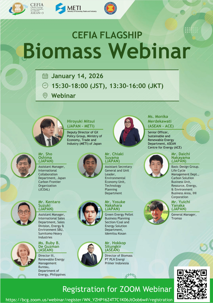 We are pleased to announce that JCOAL and CEFIA will co-host the CEFIA Biomass Webinar, a flagship event to share the latest trends, technologies, and practical cases on biomass utilization, on 14 January 2026 from 15:30 to 18:00 (JST).